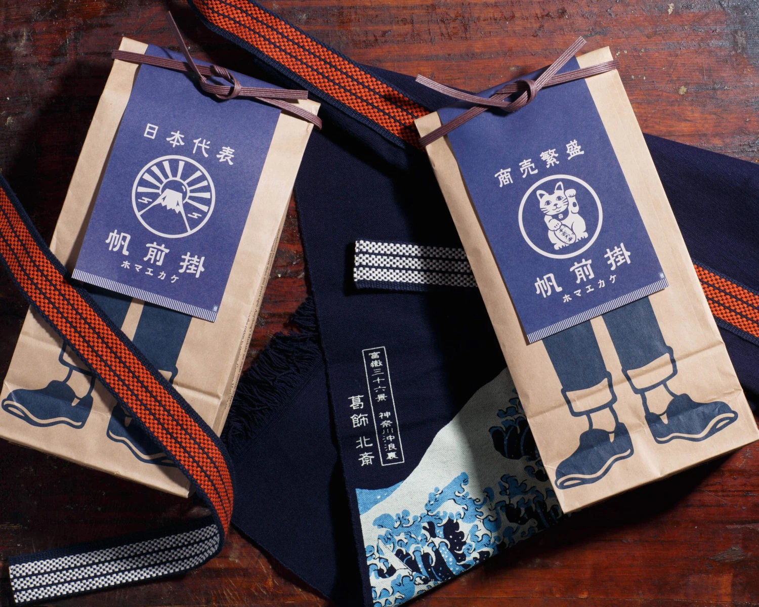 Materials: 100% cotton [/accordion] Care and Use [/title] Care: Wash cold separately. Don’t tumble dry. [/accordions-break]An apron with a centuries-old history.[/banner_heading]Maekake have been worn by pub workers and craftsmen since the 14th century, typically showcasing a business’ logo across the front. They’re made from thick cotton and feature a fringe across the bottom, which hearkens back to the ornamental garments worn by sumo wrestlers. [/banner-text-break]Tie it like so: Rest the apron at the top of your pelvis. Breathe in deeply, then release your breath lightly. Wrap the belts tightly across your back, bringing them around to the front. Tie the belts securely in front below the navel—this positioning is thought to focus and balance energy as well as offer back support. [/how-to-use-break]Do not use bleach or fabric softener. Do not tumble dry. Do not wash in warm water. Wash separately from whites, as the dye may transfer onto other fabrics. May shrink slightly after wash due to the nature of the fabric. Suitable for waist sizes up to 37 inches.