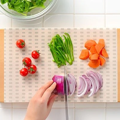 Coming in a set of 36, these cutting board sheets protect your board from stains, odors and the troubles of cross-contamination. Thick and waxy, the sheets stay in place during prep and eliminating the need to dirty several cutting boards. You can use these sheets to slice raw meat, chop vegetables with staining colors or mince garlic without worrying about lingering odors. Plus, each one is lined with one centimeter markings to help you cut each sheet to size to fit on top of your board.