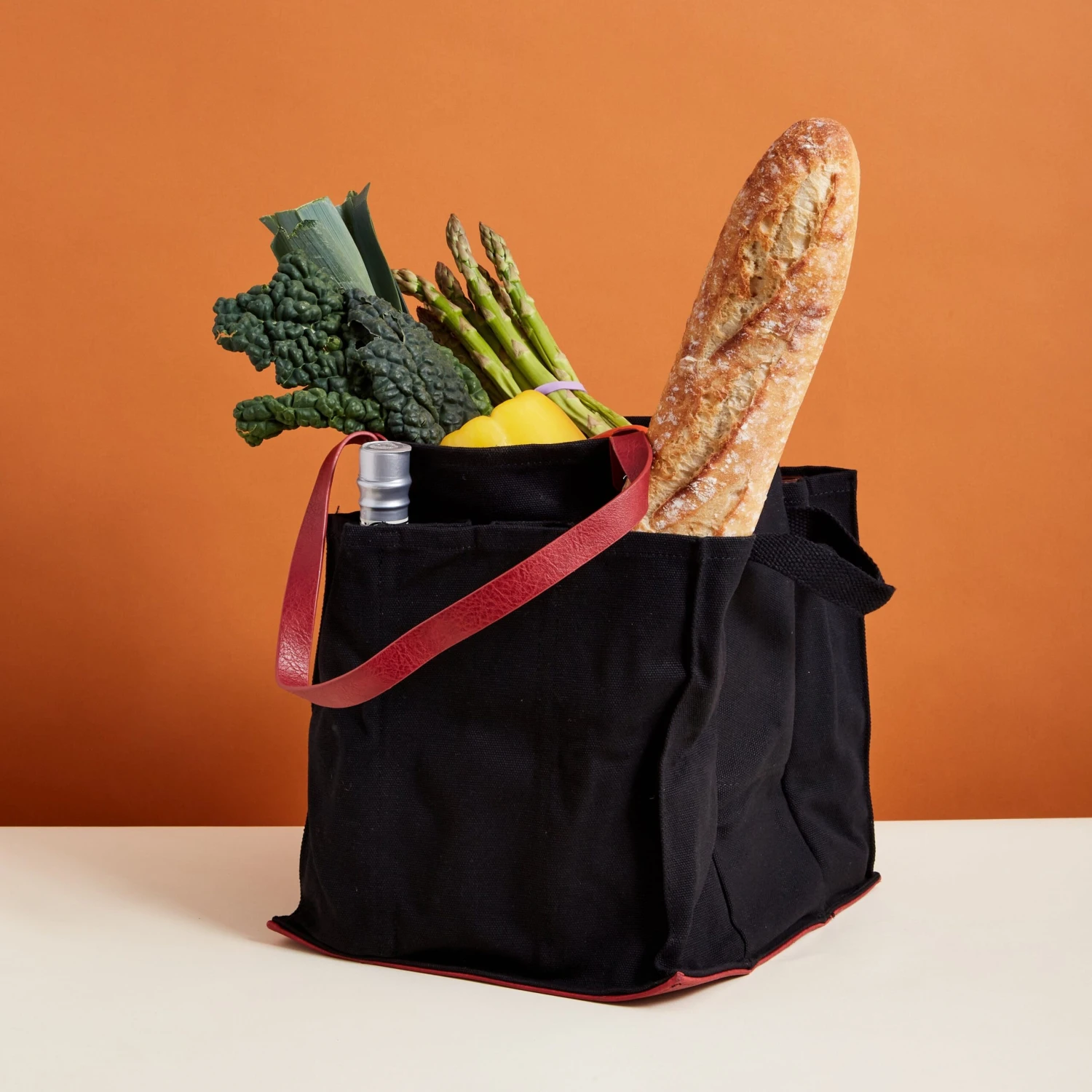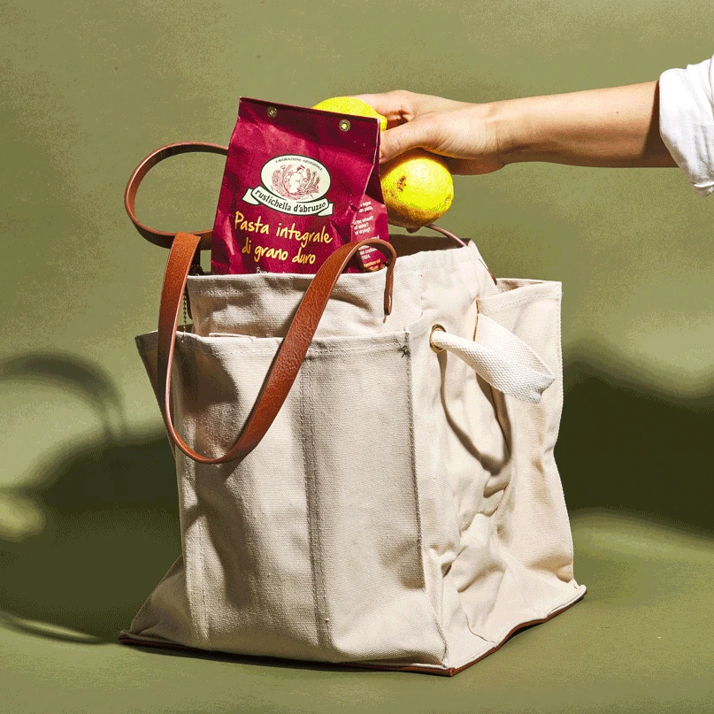Made of sturdy natural canvas and vegan leather, this tote from CapaBunga keeps even the most fragile of groceries—eggs, glass bottles, baguettes—intact on the road. The vegan leather base sits flat so loading and stacking groceries is a breeze (and no risk of your bag tipping over), and produce will remain bruise-free. Six external pockets, sized to hold anything from a glass bottle to a crate of eggs, keep your most delicate items safe. And a little harness cinches closed around a bunch of flowers, so any excess water drips to the ground, rather than on to your other groceries. Try it for gardening or art supplies, wine, bocce, sailing or fishing gear or anything else you want to tote around town (it holds up to 35 pounds).