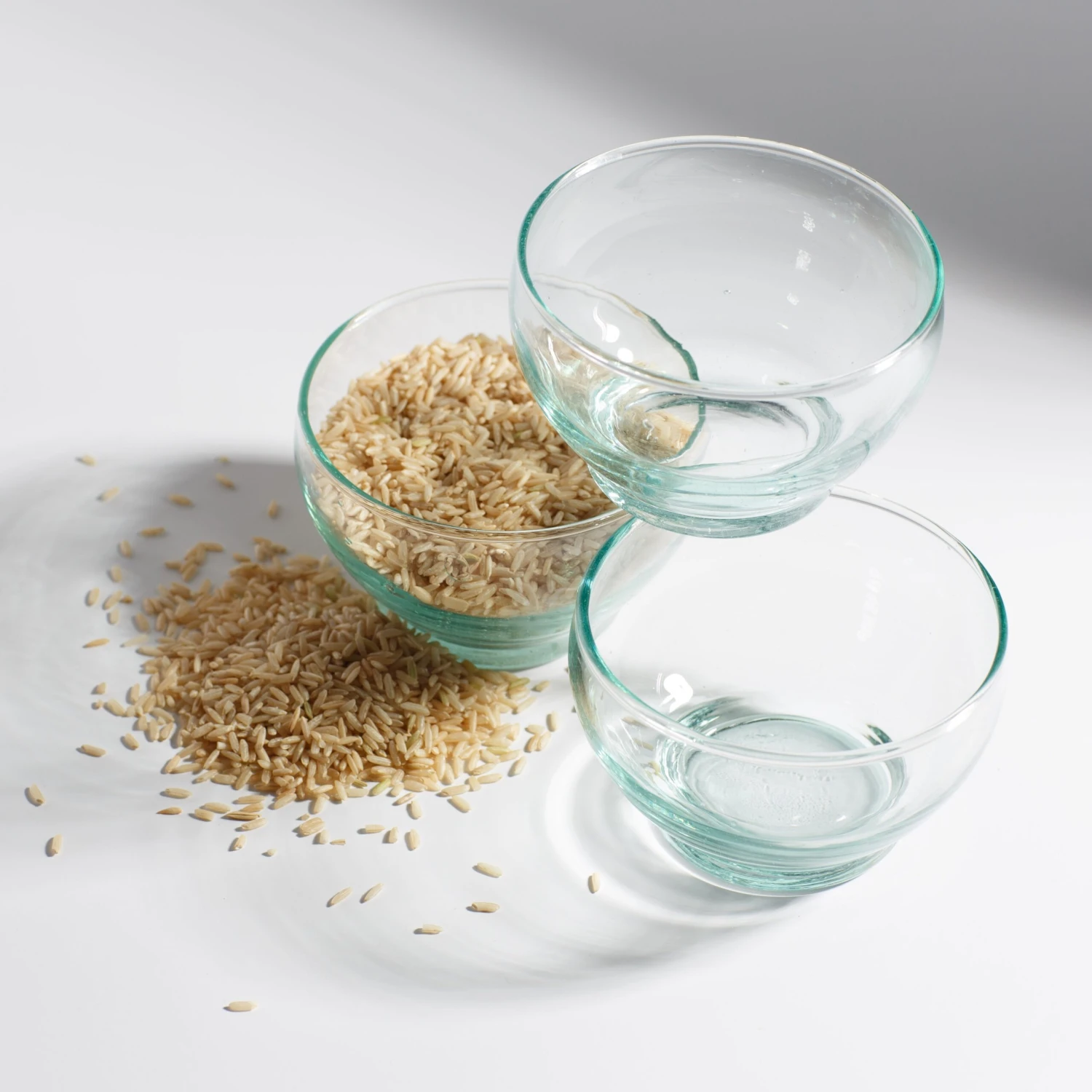 This beautiful set of small handblown Moroccan bowls is made by generational artisans from recycled glass by one of our favorite producers, Casablanca Market. Both decorative and useful, these bowls are perfect for serving a first course or dessert, or can be used as part of an elegant tabletop display. The set of three comes in green or clear glass. Casablanca Market is eco-conscious, using recyclable materials and employing eco-friendly practices whenever possible. In addition, they strive to provide financial security for the craftspeople who create their wares, helping to preserve and secure their artistic and culinary heritage.