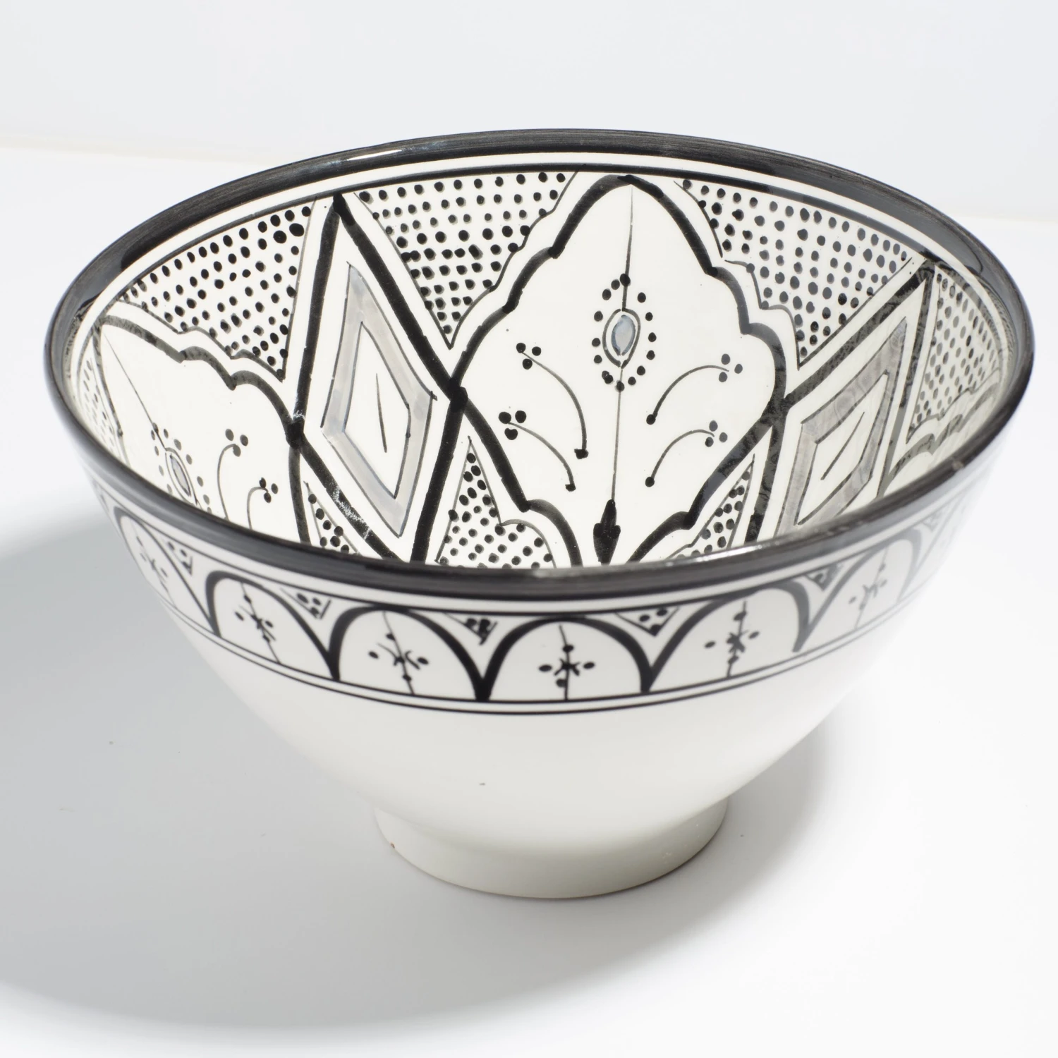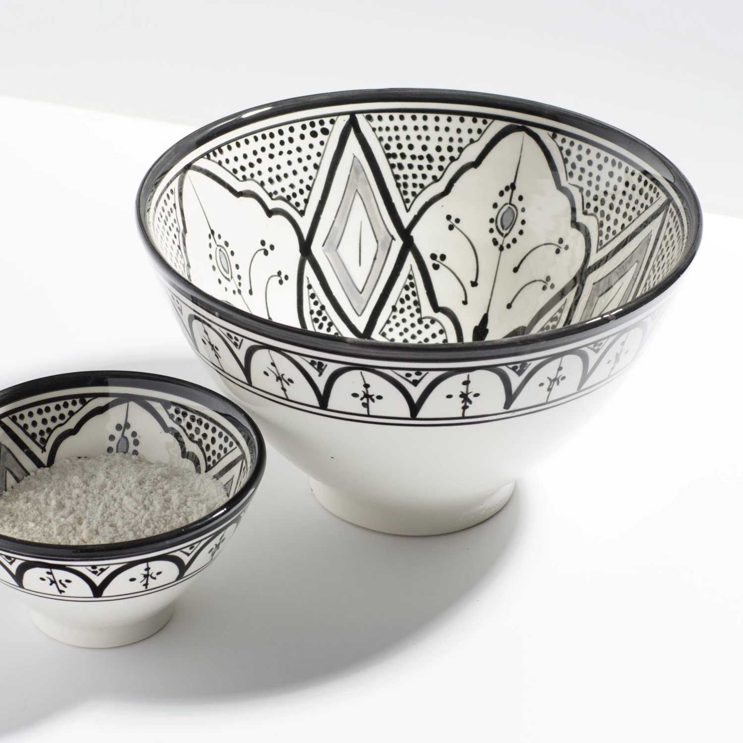 The hand-painted design on this beautiful bowl pays tribute to Safi, the pottery capital of Morocco that is home to some of the world’s most beautiful ceramics. This 12-inch wide bowl from Casablanca Market is large and deep enough for serving salads, pasta, buffet side dishes or for display, placed on a table filled with fruit or as part of a larger centerpiece. Its simple black and white motif makes this bowl an ideal addition to any kitchen and table. Casablanca Market, one of our favorite producers of Moroccan condiments, spices and cookware, is an eco-conscious company, using recyclable materials and employing sustainable practices whenever possible. And they strive to provide financial security for the craftspeople who create their wares, helping to preserve and secure their artistic and culinary heritage.