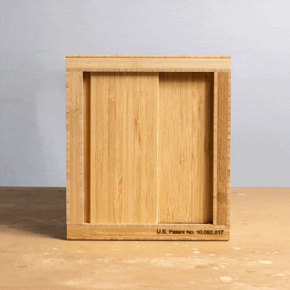 Care: Hand wash shelves with hot water and a splash of distilled white vinegar; air dry. Bottom brick should be submerged in water every few weeks to maintain correct humidity levels. [/accordions-break] Store your cheese like a pro. [/banner_heading] The Cheese Grotto was tested in a dairy lab against a typical cheese wrapping paper and it won out in prolonging a wedge’s shelf life. Not only will it cut down on wrapping waste, but the grotto also creates a perfect microclimate in its interior via its eco-friendly materials, like breathable bamboo wood. [/banner-text-break] What we especially love about this stunning cheese grotto is the flexibility it offers: place the grotto in the fridge for up to 3-6 weeks for longer storage, or feel free to keep the grotto on your counter (it’s attractive enough to do so) for 7-10 days at room temperature, so your cheese is ready to enjoy anytime. [/how-to-use-break] Can keep on counter for 7-10 days if room is under 70 degrees; otherwise, store in refrigerator. Hand wash shelves with hot water and a splash of distilled white vinegar; air dry. Bottom brick should be submerged in water every few weeks to maintain correct humidity levels.