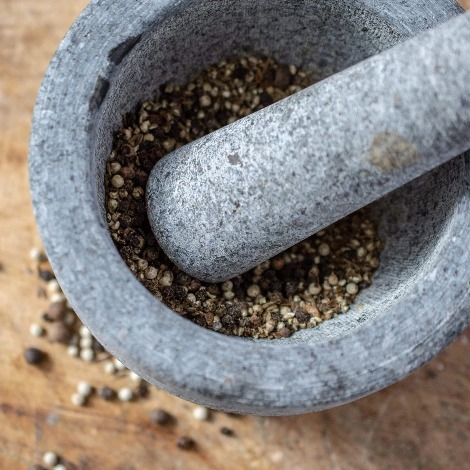 Material: Unpolished granite [/accordion] CARE AND USE [/title]Care: Hand wash only [/accordions-break] Here at Milk Street, we love crushing spices or herbs by hand to create more variation in texture and extract more flavor, and a mortar and pestle allow us to blend them more precisely. [/banner_heading] This version, carved from unpolished granite, has a generous 2-cup capacity, which means you can make larger quantities of pesto or chimichurri at a time than with other brands. [/banner-text-break] We also like using a mortar and pestle for making a fresh turmeric paste, inspired by our travels in Thailand: Grind together 3 ounces of peeled fresh turmeric, 2 garlic cloves, 1 small shallot (roughly chopped), 1 tablespoon light brown sugar and 1 teaspoon kosher salt. Use the paste to coat chicken before roasting or braising, or sauté it as a base for a soups, stews and sauces. It also can be used in vegetable dressings. [/how-to-use-break]