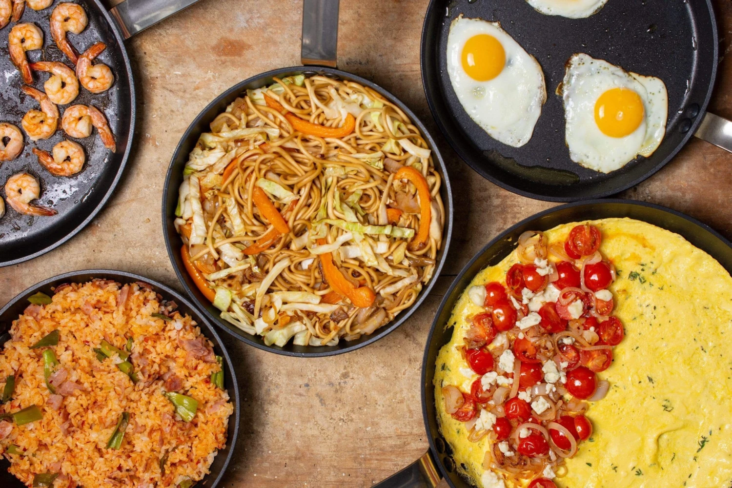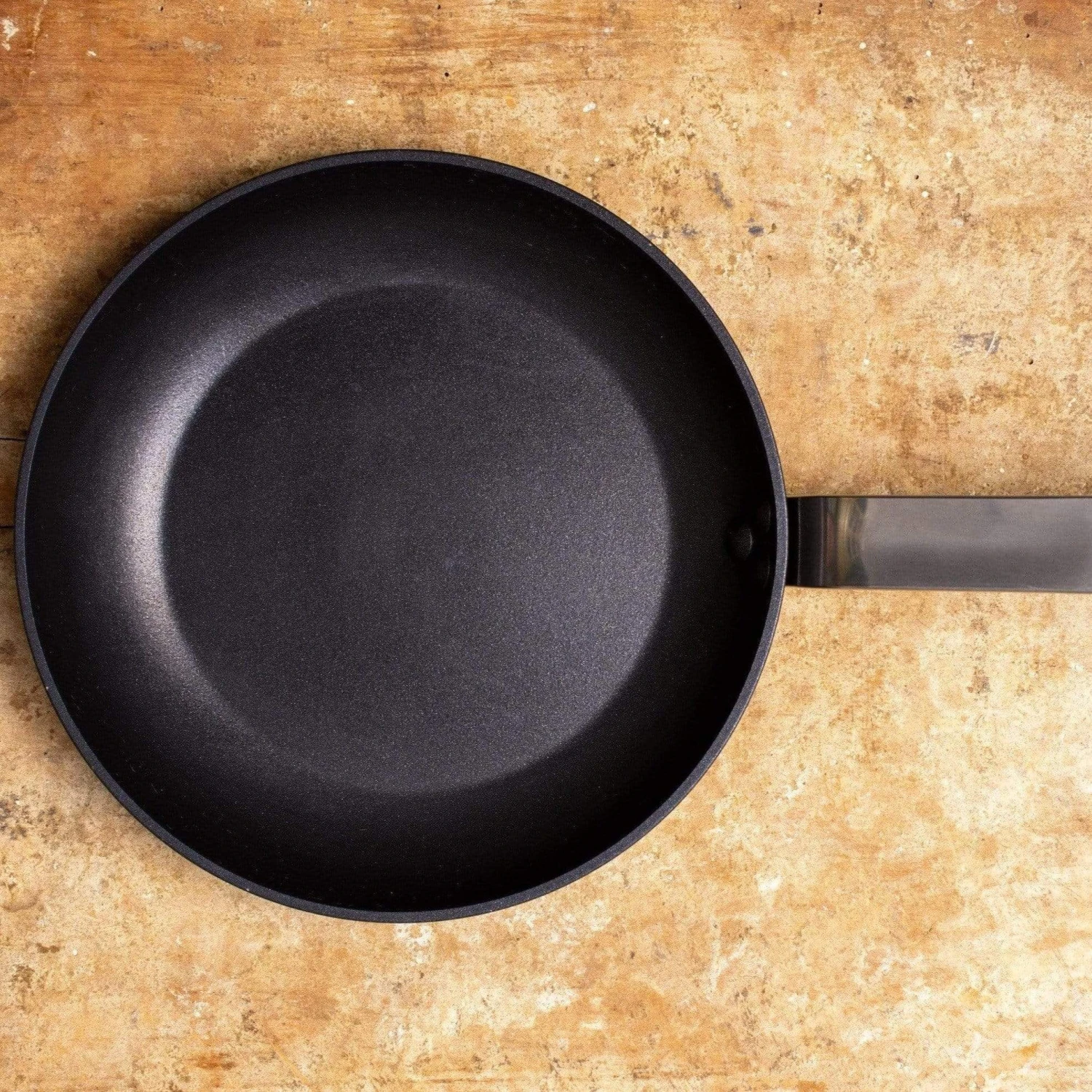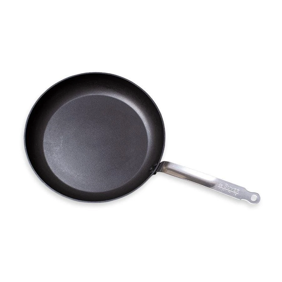 Historic French company’s Choc Intense line of nonstick pans use the latest generation of nonstick coating—designed to have a 50% longer lifetime than other models—so they release food easily and are a breeze to clean with a soft sponge. These Round Frypans also feature robust forged aluminum walls and induction-friendly stainless steel bottoms, so they are fast-heating and provide even heat distribution when sautéing and searing. The attractive matte black pans are weighty but not cumbersome, with sturdy triple-riveted stainless steel handles. De Buyer even includes a cloth bag with each pan to protect the nonstick surfaces during storage, so you can stack Choc Intense cookware without worrying about scratching the material.