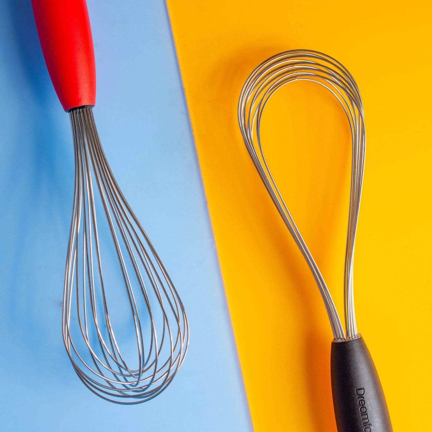 Materials: Plastic, spring steel[/accordion] Care and Use [/title]Dishwasher safe. Keep plastic handle away from heat. [/accordions-break]The only whisk you’ll ever need.[/banner_heading] This isn’t your typical whisk—it’s actually three! The Dreamfarm Flisk is brand new to the market and seamlessly transitions from a classic balloon whisk, to a narrower sauce whisk, to a completely flat tool perfect for deglazing pans and stress-free storage.[/banner-text-break]Use the balloon whisk setting for whipping cream and egg whites and the half-collapsed setting for mixing sauces. The flat setting works perfectly for glazing pans, too. [/how-to-use-break]Dishwasher safe. Keep plastic handle away from heat.