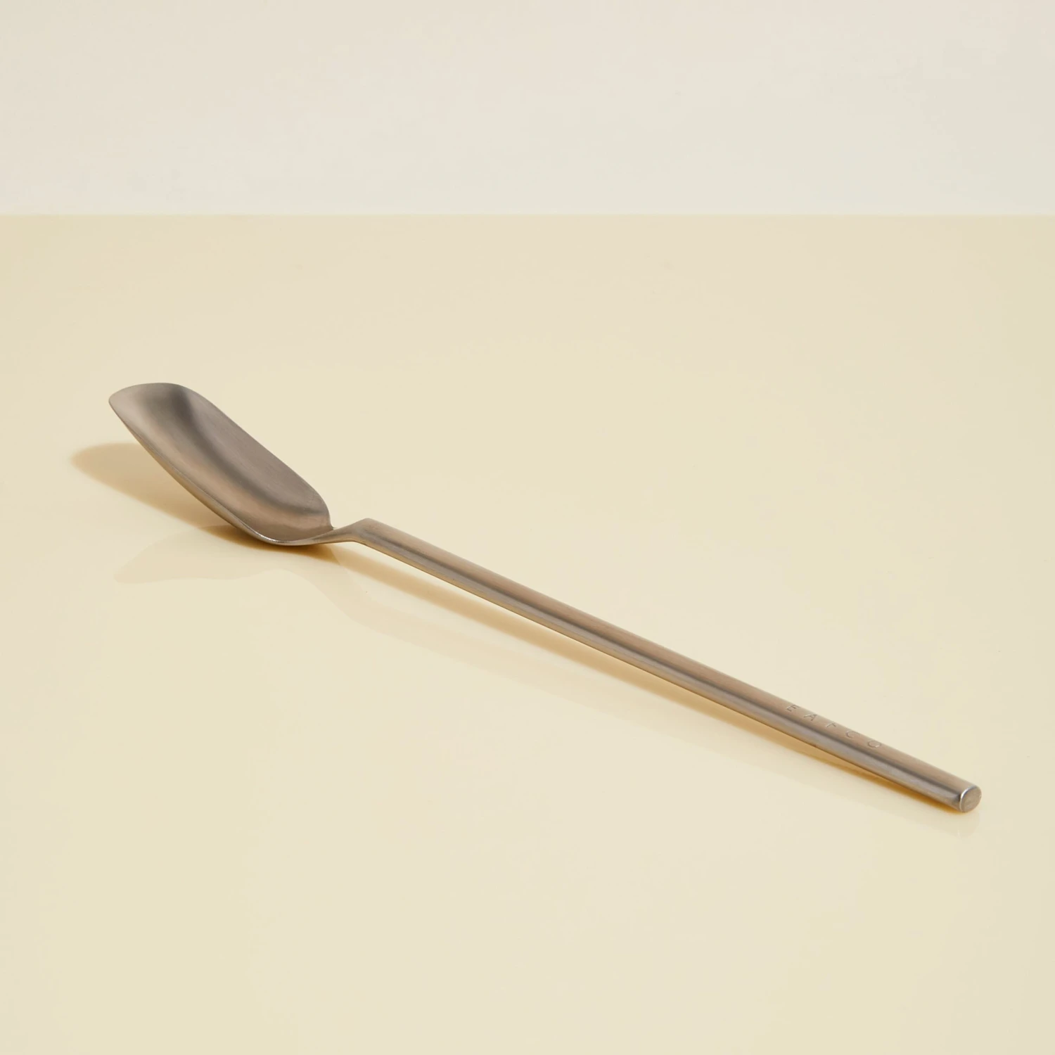 We reach for this sturdy, ingenious spoon from EatCo almost every time we cook: Long-handled with a slim profile, it’s perfect for comfortably scooping from narrow jars without getting caught on its way out. The 0.85-inch thin, deep bowl of the spoon holds plenty of seasoning, spices or sauce (it makes a great tasting spoon, too.)
