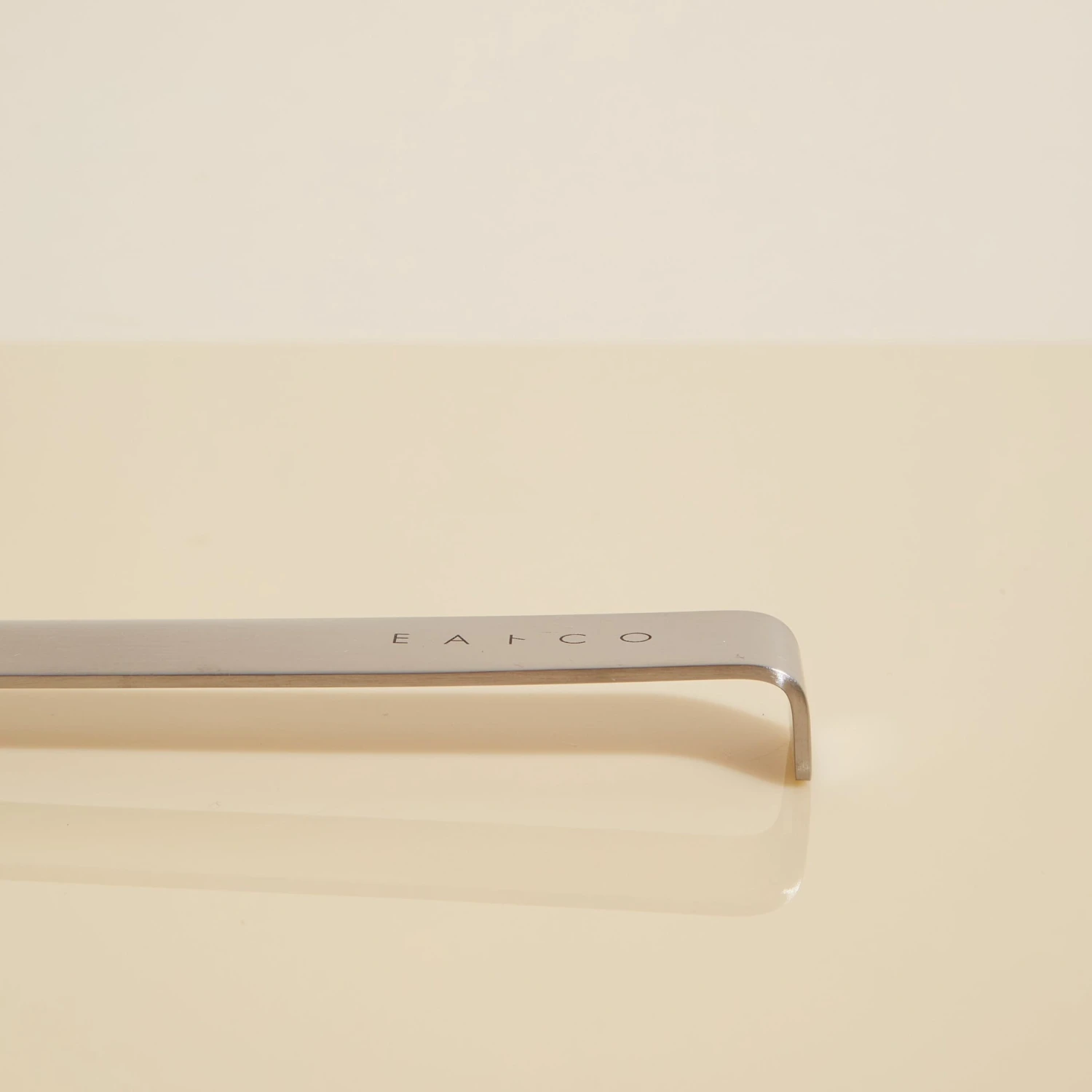 This Japanese-designed serving spoon is compactly sized and made of high-grade stainless steel. The handle features a brilliant detail on the end: a down-turned lip that can hang on to the rims of bowls or containers, keeping the spoon from slipping in.