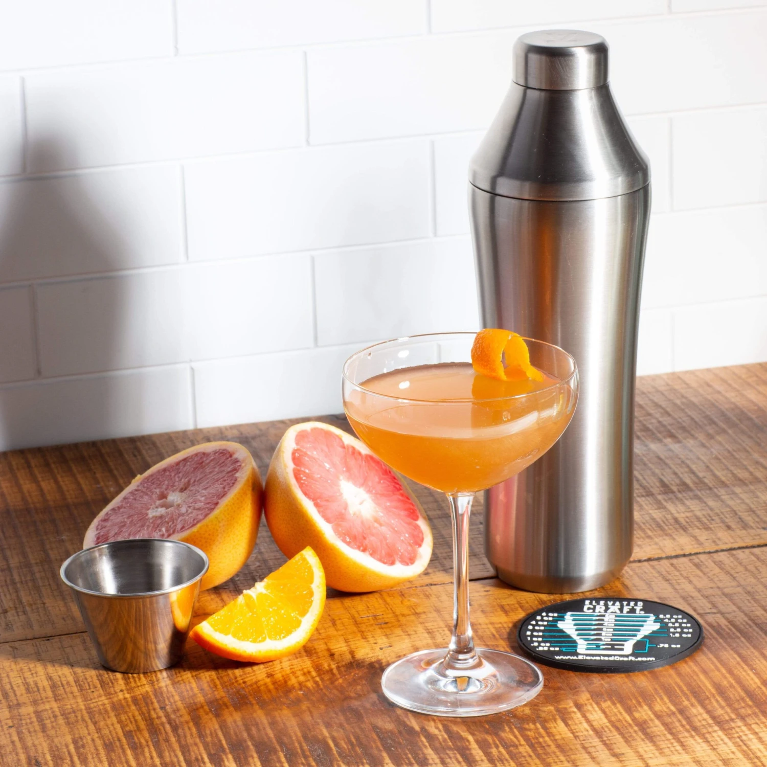 Materials: Pro-Grade Brushed 304 Stainless Steel[/accordion] Care and Use [/title]Care: Dishwasher safe[/accordions-break]The founder of Elevated Craft, Adam Craft, spent two years developing this shaker. [/banner_heading]He had set out to solve the most common problems for the home bartender, especially leaks, sticking and frozen hands.[/banner-text-break]Use when crafting any shaken cocktail. We especially love using it when making this Cinnamon-Smoked Whiskey Sour.[/how-to-use-break]KITCHEN NOTES