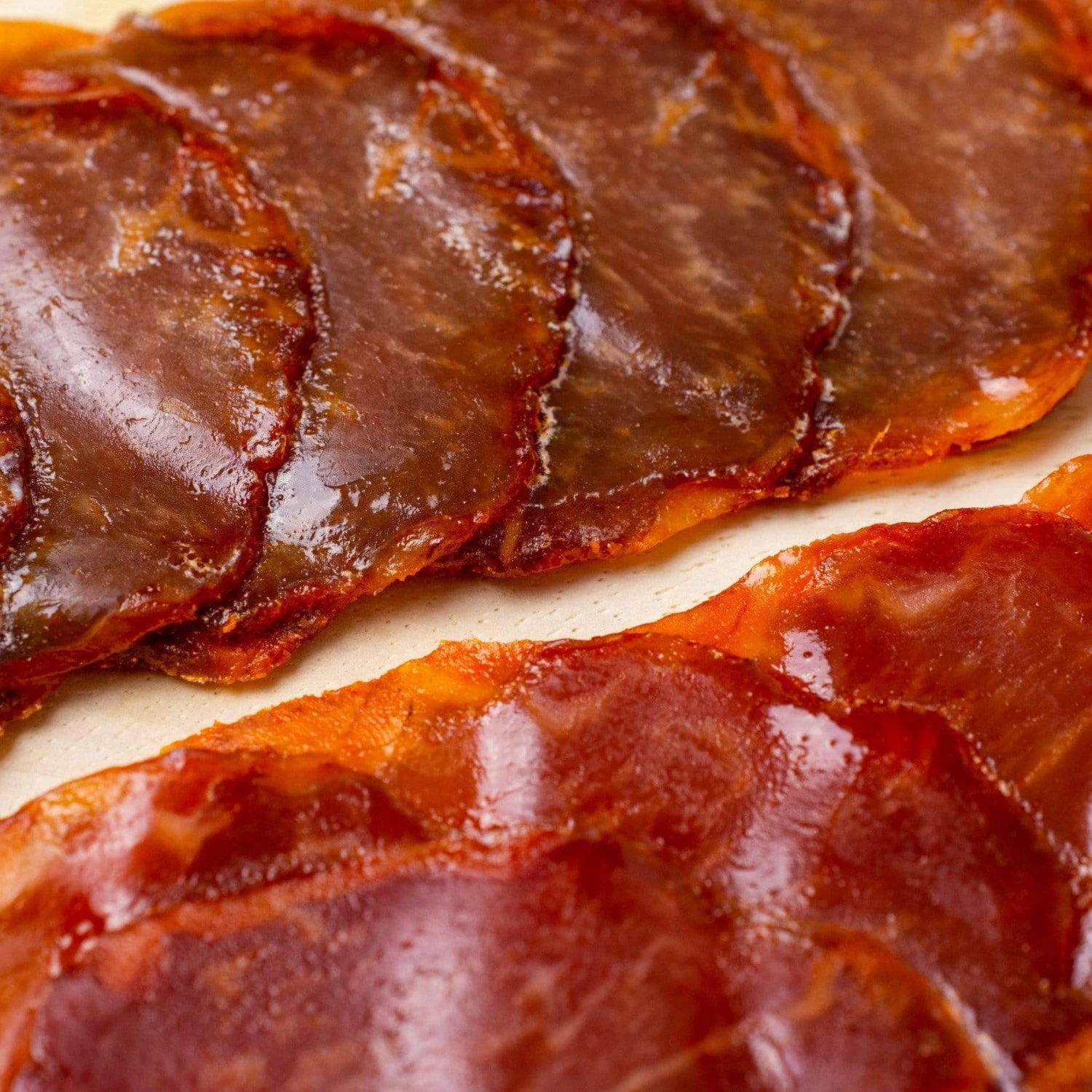 [/description-break] Ingredients [/title] Ingredients: Ibérico pork loin, salt, pimentón, garlicAllergens: Gluten-free, lactose-free [/accordion] Specifications [/title] Net Weight: 2 ounces