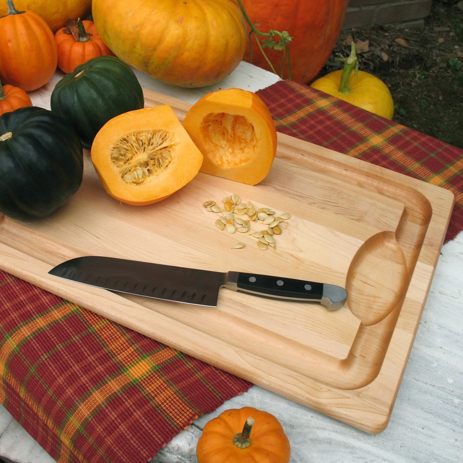 A bestseller in J.K. Adams’ lineup, this Maple BBQ Carving Board is perfect for carving meats and collecting juices at the same time. Thanks to a wide groove carved into the board, you’ll be able to carve cleanly and prevent spills. It’s made from maple hardwood and finished with tinted tung oil—a food-safe drying oil made from the seed of the tung tree used to give wood a polished, deeper look. Use to carve steak, chicken, pork and more, or keep on display when not in use for a beautiful decor piece. Available with or without undercut handles.