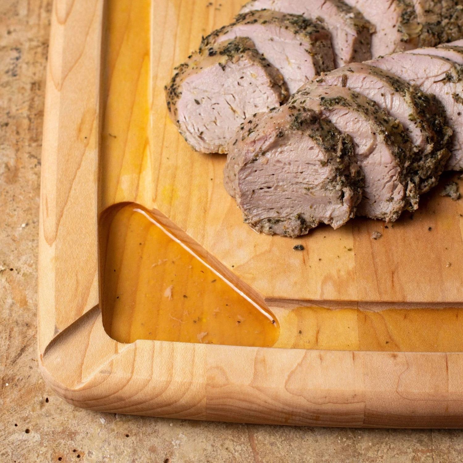If you cook roasts, chicken, steaks and chops, this cutting board from Vermont company J.K. Adams is perfect for you. A milled channel around the board’s periphery captures and channels juices to a well at one end that is cut with a pouring spout. The center of the board is also concave, helping anchor meats during carving. The sturdy maple resists knife cuts and will only look better with age as it develops a patina through use.