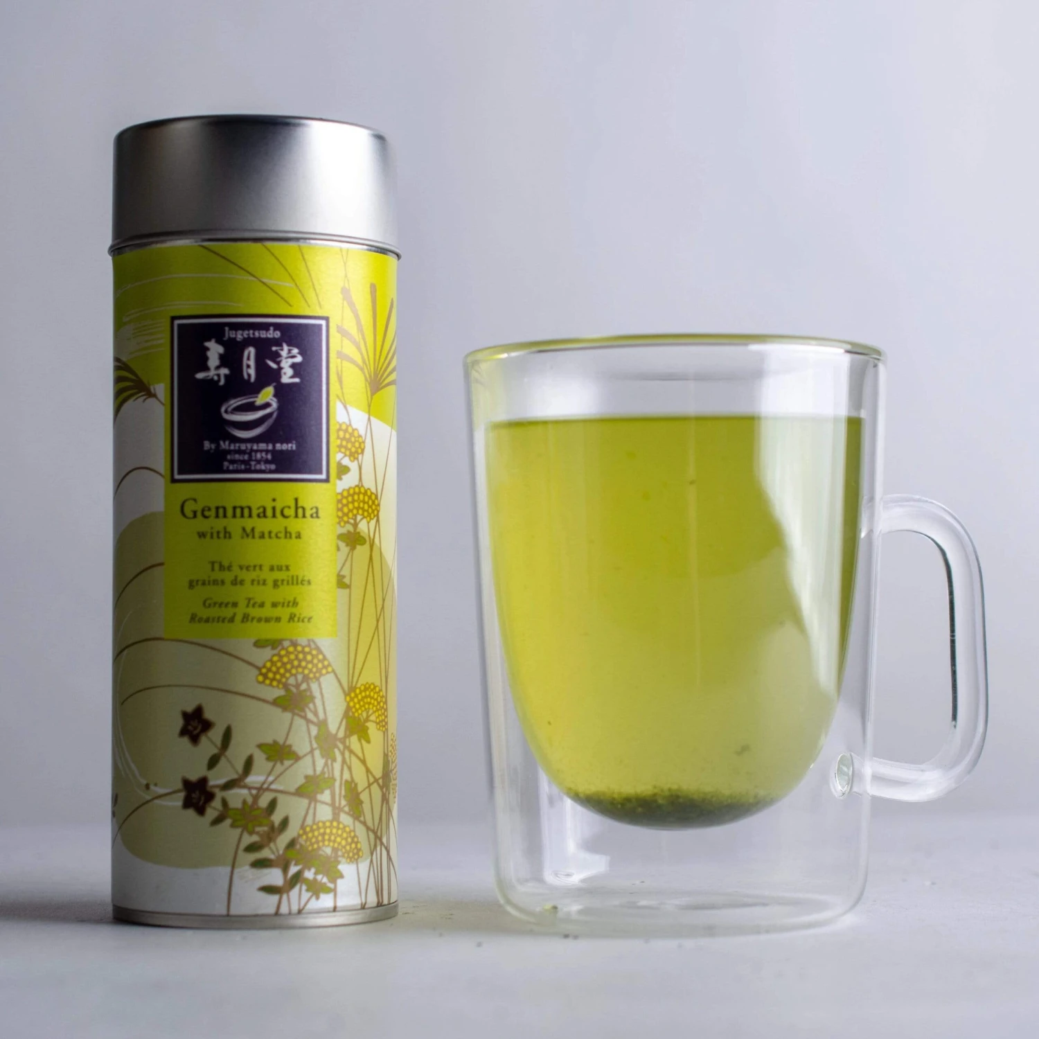 Genmaicha is Japanese green tea that is mixed with roasted, popped brown rice. This premium product from Jugetsudo is a rich, balanced green tea, with notes of sesame and a hint of umami richness from the caramelization of the toasted rice. Earthy matcha adds a fuller, rounded flavor for a satisfying cup.