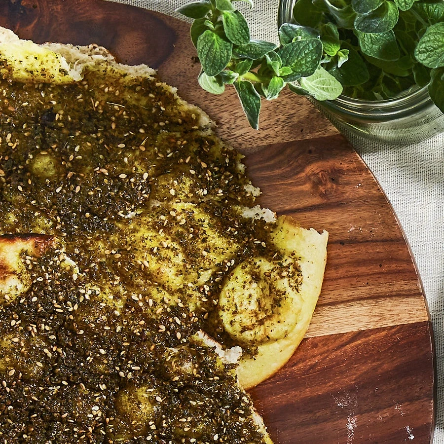 Place of Origin: Jordan[/accordions-break]Use this za’atar stirred into a yogurt with some olive oil and lemon juice to make a yogurt sauce to top or dip your veggies, as a seasoning for meat, especially chicken, lamb or fish, mixed into vinaigrettes, or to top flatbreads, pizza and homemade crackers. We especially like using it when making Yeasted Flatbreads with Za’atar Oil, Roasted Butternut Squash with Tahini and Za’atar and Tomato-Zucchini Tart with Za’atar and Feta.[/how-to-use-break] KITCHEN NOTES