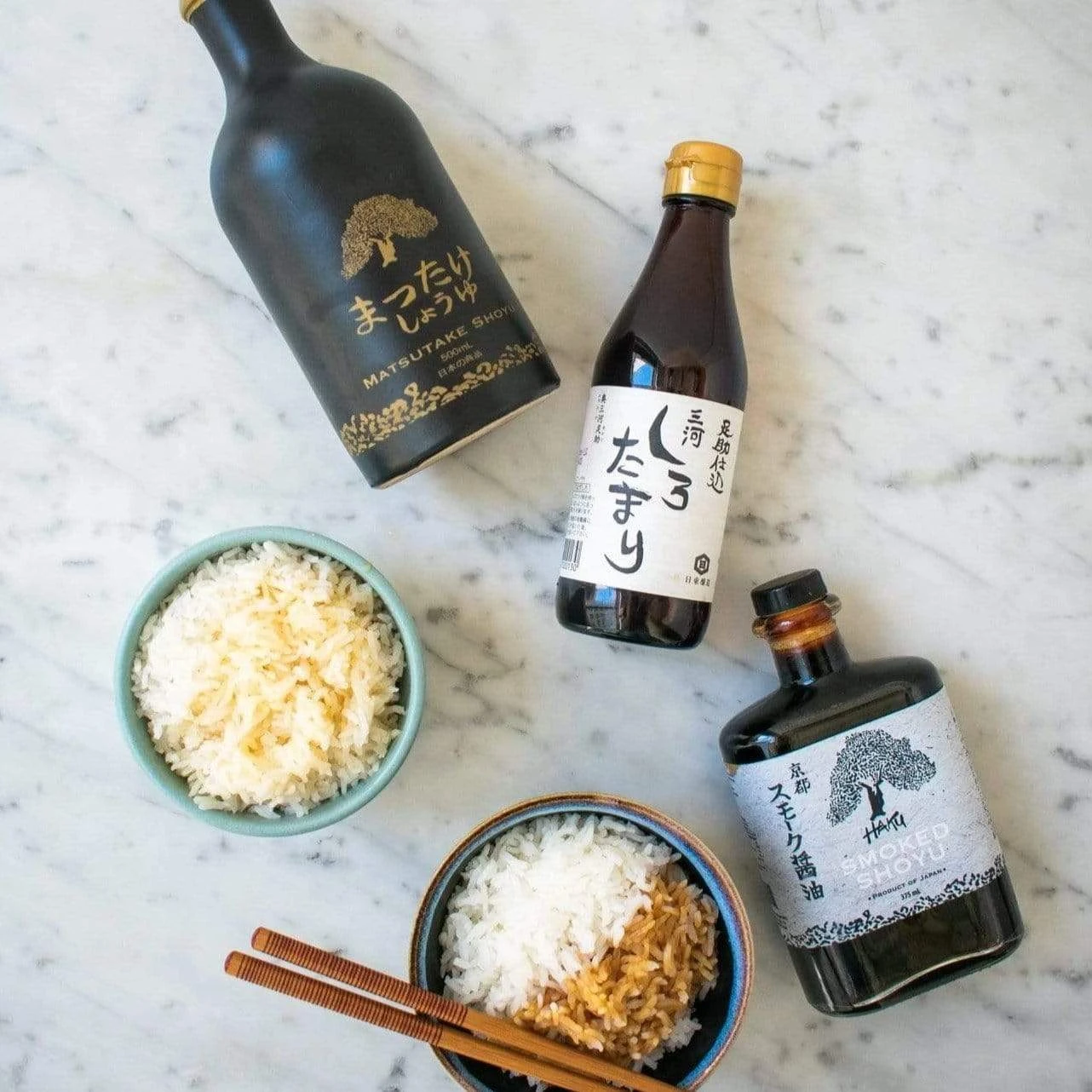 [/description-break] Ingredients [/title] Water, soybeans, salt, wheat, matsutake mushrooms, alcohol[/accordion] Specifications [/title]Net Volume: 500 millilitersPlace of Origin: Japan[/accordions-break]Earthy, spicy Japanese matsutake mushrooms have a uniquely clean flavor and an aroma reminiscent of cedar or pine.[/banner_heading]The savory notes in matsutake pair perfectly with the sweet, salty and umami flavor of shoyu.[/banner-text-break]Use this mushroomy shoyu in place of plain tamari or shoyu in any recipe. The extra boost of earthiness pairs wonderfully with both meats and vegetables.[/how-to-use-break]