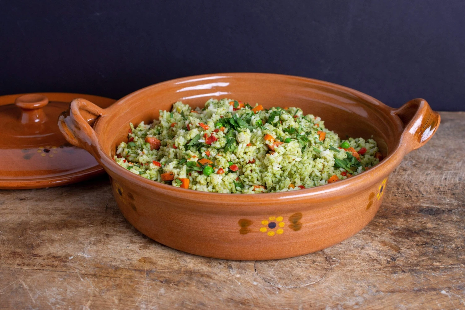 This traditional clay cazuela from Hidalgo, Mexico, is more lightweight than Pyrex, more attractive than either glass or metal cookware, and has nonstick properties thanks to its beautiful glazed finish—which also makes it easy to clean. Its height and generous capacity make the cookware great for making large batches of rice or paella. Use it as a stunning serving piece for Arroz Verde, a Mexican rice dish that gets its vibrant green hue from fresh herbs and looks extra appetizing against the terra cotta hue. The cazuela easily holds four chicken breasts or six thighs and is ideal for recipes that require oven-safe skillets, such as our Mustard-Braised Chicken with Tarragon. Each piece is handcrafted by specialized artisans and takes between 15 and 20 days to produce, from mining local clay to polishing the dishes using volcanic rock. And not only will it add an attractive, authentic touch to your table, the cazuela is also certified food-safe, whereas many other brands of earthenware are made with lead. Because the clay is finely ground, the dish requires very little seasoning before first use—simply bring water to a boil in the cookware. As with all clay cookware, the pieces should not be exposed to extreme temperature shock. For instance, let a hot pot cool to room temperature before running under cold water to avoid cracking.