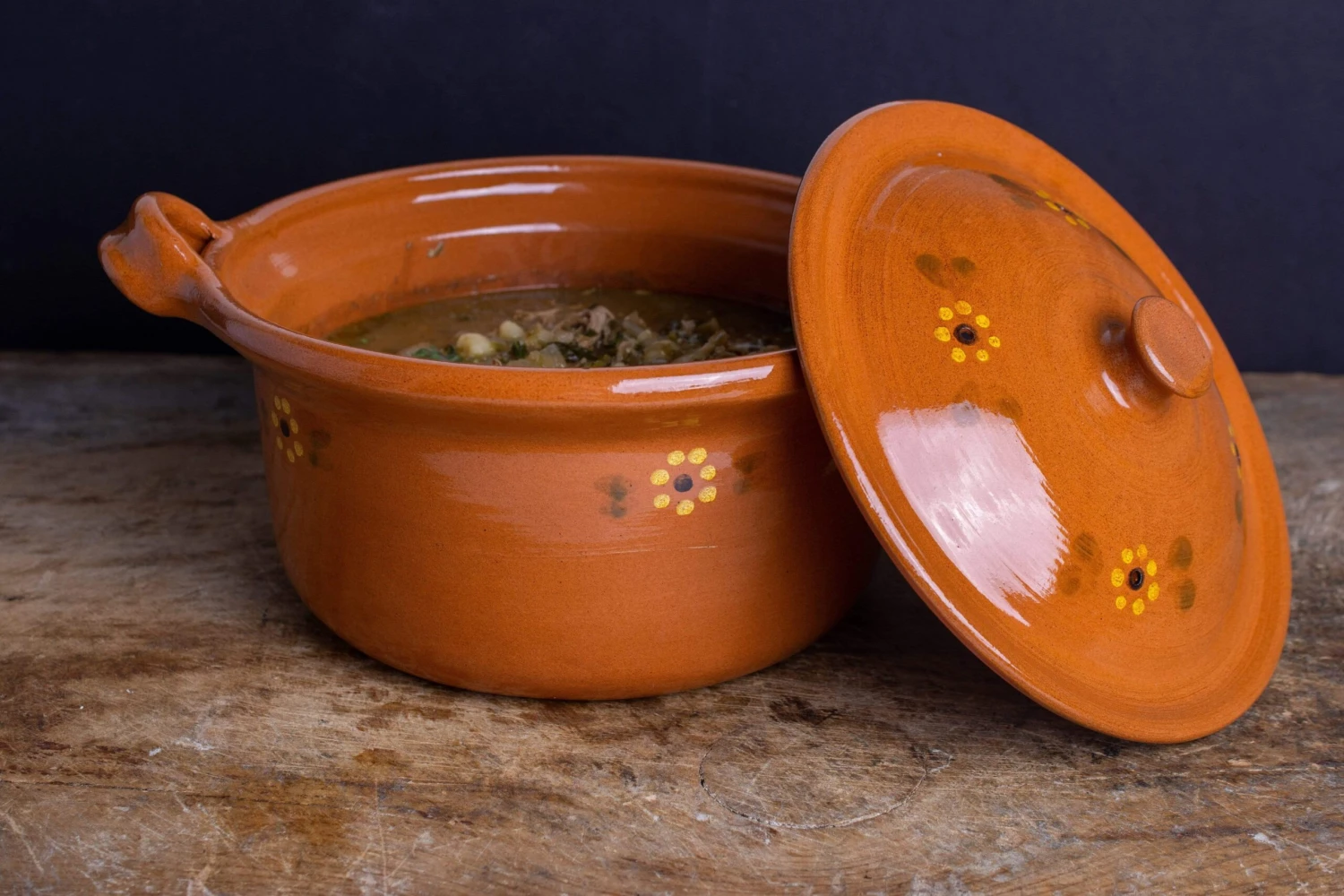 This traditional clay cazuela from Hidalgo, Mexico, is more lightweight than Pyrex, more attractive than either glass or metal cookware, and has nonstick properties thanks to its beautiful glazed finish—which also makes it easy to clean. Use this 3.5-quart pot as you would a Dutch oven, especially for recipes that require cooking in the oven, such as our Roman Braised Beef with Tomato and Cloves—the gradual, steady heat of the terra cotta will help with even cooking. We also like the subtle ventilation holes in the lid, which are flawlessly disguised by the painted floral pattern. They allow moderate evaporation so you can reduce soups and stews without worrying about food sticking or scorching to the bottom of your pot. Each piece is handcrafted by specialized artisans and takes between 15 and 20 days to produce, from mining local clay to polishing the dishes using volcanic rock. And not only will it add an attractive, authentic touch to your table, the cazuela is also certified food-safe, whereas many other brands of earthenware are made with lead. Because the clay is finely ground, the pot requires very little seasoning before first use—simply bring water to a boil in the cookware. As with all clay cookware, the pieces should not be exposed to extreme temperature shock. For instance, let a hot pot cool to room temperature before running under cold water to avoid cracking.