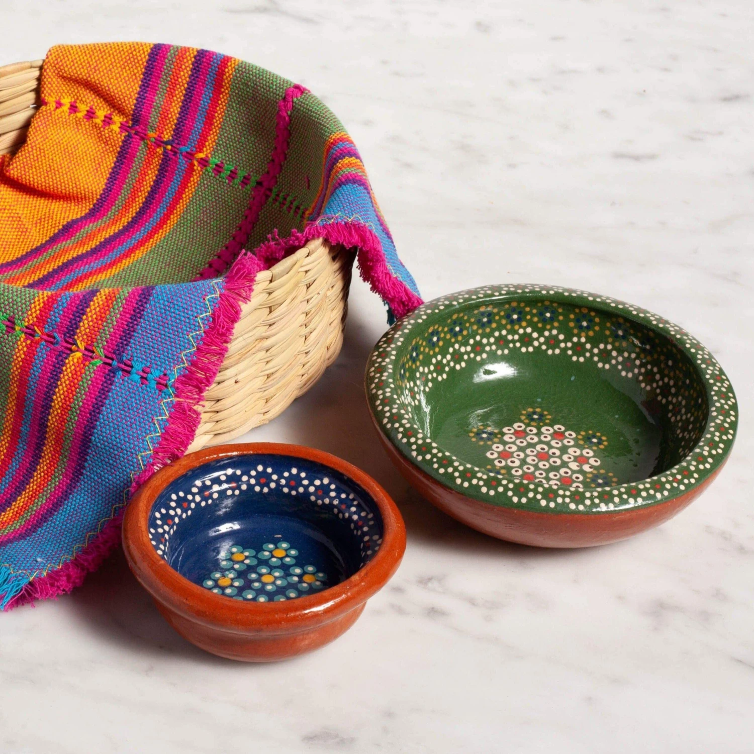 Place of Origin: Mexico[/accordion] Care and Use [/title] Care: Hand-wash only[/accordions-break]Mexico By Hand’s crafts and folk art come from Michoacán– home to over 100,000 artesanos (craftspeople) who create traditional folk art using methods passed down for generations.[/banner_heading]The producers developed strong relationships with these artisans and allow them to set their own pay rate. [/banner-text-break]These authentic bowls are wonderful for displaying condiments, snacks, seasonings and more atop your table.[/how-to-use-break]Hand-wash only. We recommend keeping these delicate bowls out of the microwave.