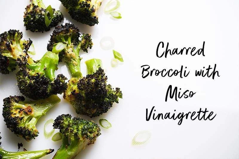 Charred Broccoli with Miso Vinaigrette: Dress broccoli with miso and oil and then broil or grill until charred and crisp-tender. Toss with a dressing of miso, oil, vinegar, mirin and ginger. Serve with optional scallions.