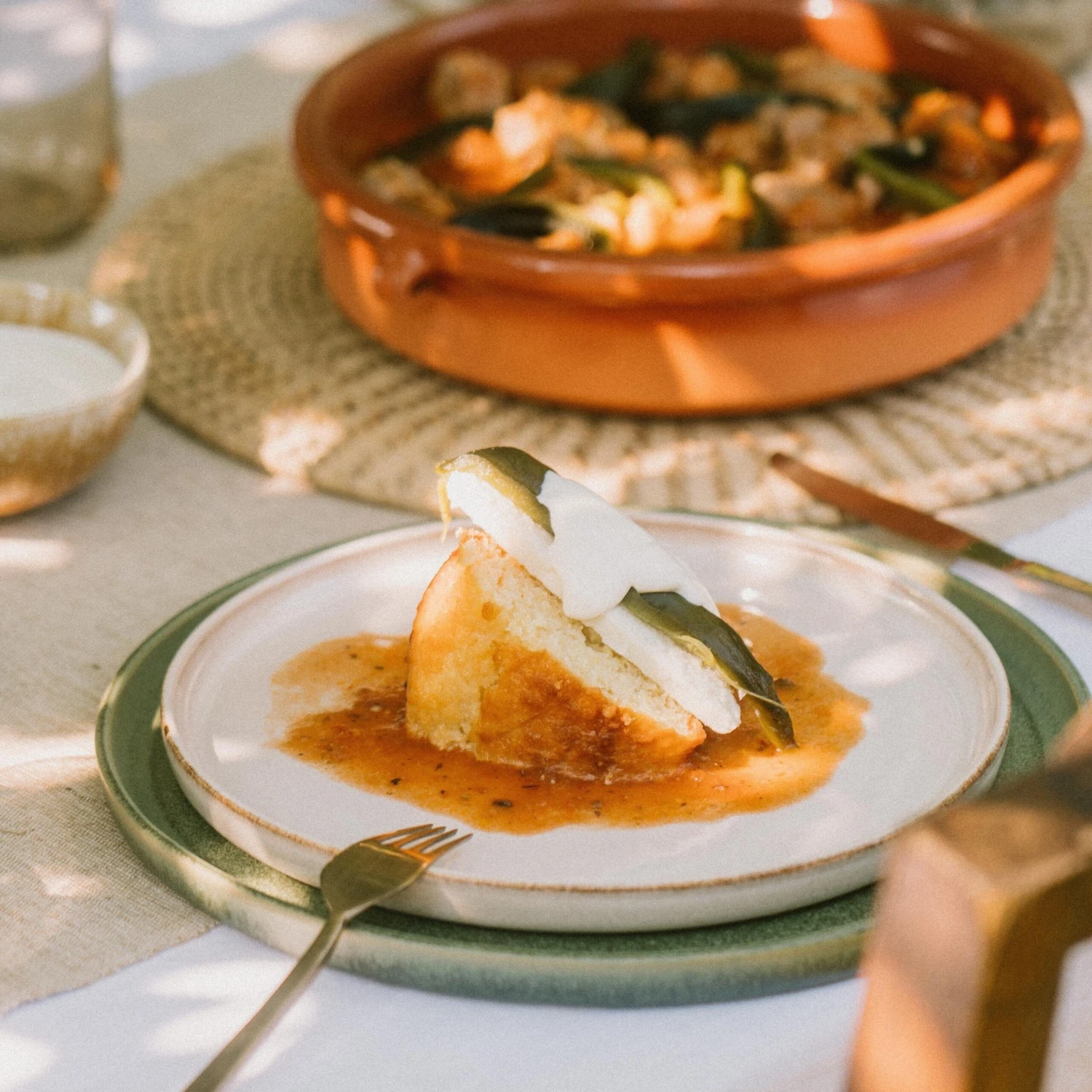 [/description-break] What’s On the Menu [/title]Carne de Puerco con Rajas en Salsa de Tomate (Pork Chops in Spicy Tomato and Poblano Sauce)Torta de Elote (Corn Cake)