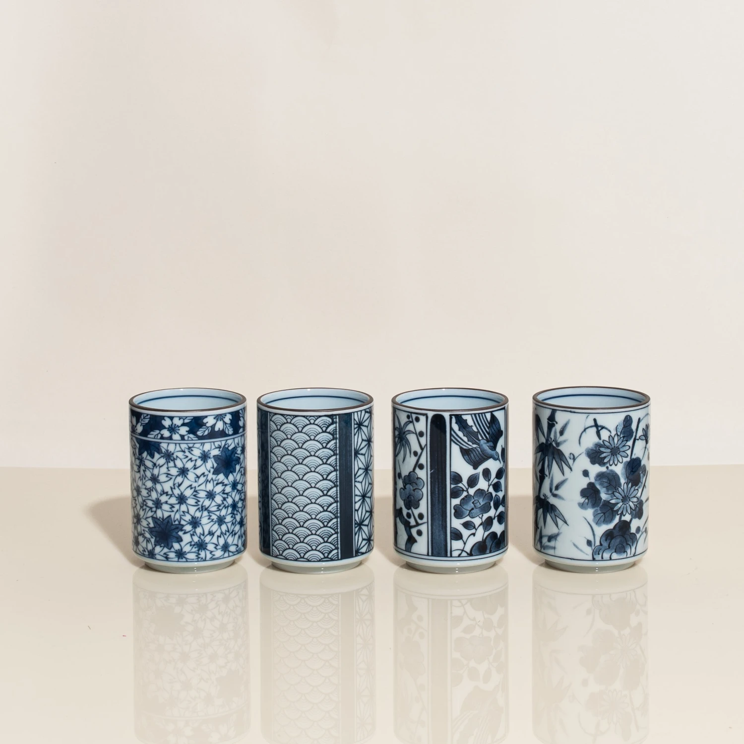 This set of four clay teacups is perfect for serving tea and other hot beverages to guests while entertaining. They’re made from Japanese stoneware, a popular material for functional yet elegant tabletop items—as it falls somewhere between the utility of clay and the delicacy of porcelain. Each cup features some hand-done glaze work in assorted blue floral and geometric patterns.