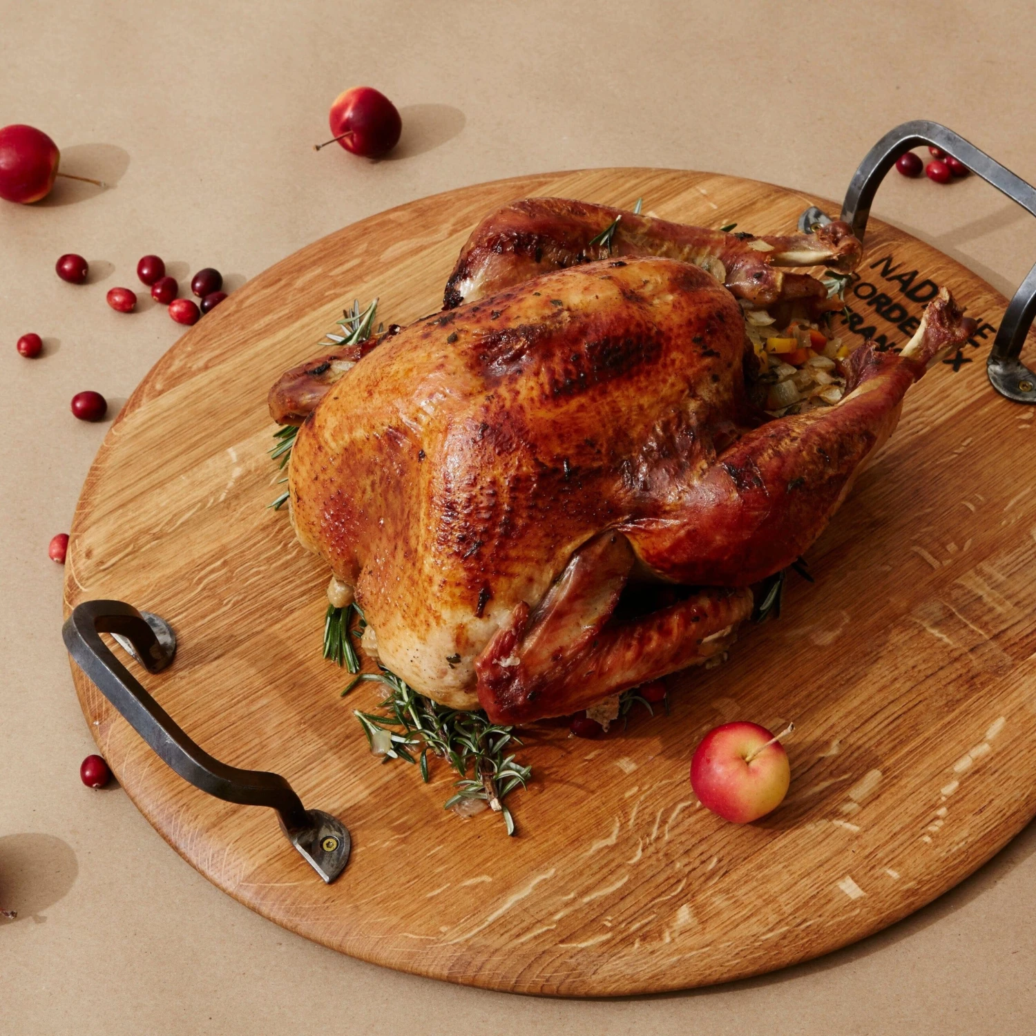 Meet your next heirloom piece. Provence Platters reclaims retired wine barrels from vineyards in the countryside of Napa or Bordeaux and turns each one into stunningly beautiful serving pieces, like this large platter. Like great wine, every piece from Provence Platter takes time and skill to perfect. Each platter takes four or five years to make, from drying out retired wine barrels all the way to using woodworking techniques, like elegant Swiss biscuit joinery, which strengthens the assembled pieces and prevents warping or cracking, seamlessly, without any extra hardware. The surface of this large serving platter is completely food-safe, thanks to three coatings of beeswax on the oak wood. And each platter is buffed to a soft luster and finished with iron handles, forged by hand in Brooklyn the old-fashioned way: by heating and hand-bending each piece. This platter is perfect for entertaining—we like it for elegantly pulling together cheese and charcuterie.