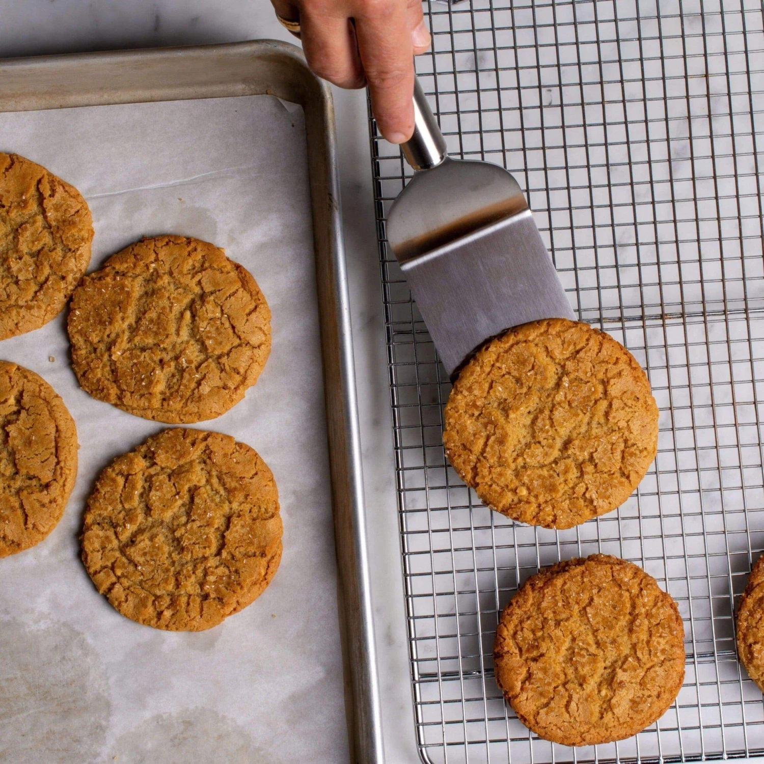 This Angled Spatula has an offset handle designed for sliding under and flipping foods, and its small size makes it especially dexterous and easy to maneuver. And as opposed to spatulas that bend under the slightest pressure and only apply force near the handle end, Rösle’s Angled Spatula distributes pressure evenly along the length of the blade for pressing and smashing foods. Like any stainless steel utensil, it should only be used on durable surfaces.