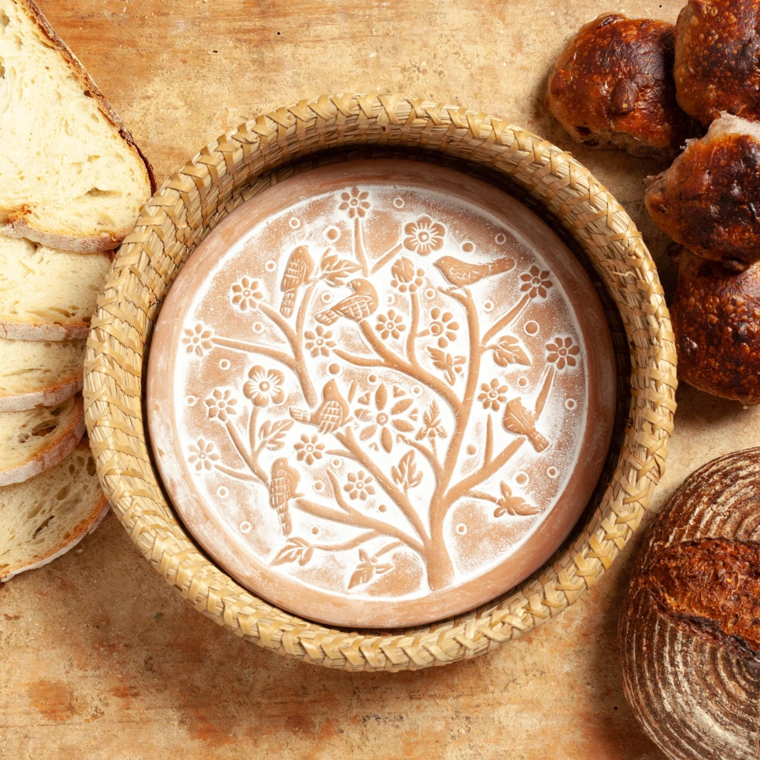 Made by artisans in Bangladesh, this beautiful bread warmer is fashioned from terra cotta clay that’s gathered by hand along riverbanks before it’s cleaned, thickened, molded and fired at a low temperature. This oven-safe stone features a lovely nature-inspired design as well as a whitewash, which softens the material’s natural reddish hue. It sits within a basket that’s handwoven using kaisa grass and palm leaves, which are fast-growing local resources. Plus, the employment these fair trade items provide to rural Bangladeshi women is vital, there aren’t many other ways for them to earn an income. For best results, make sure your bread (slices, rolls, etc.) is spread out on the clay base, covering as much area as possible. It warms through surface contact.
