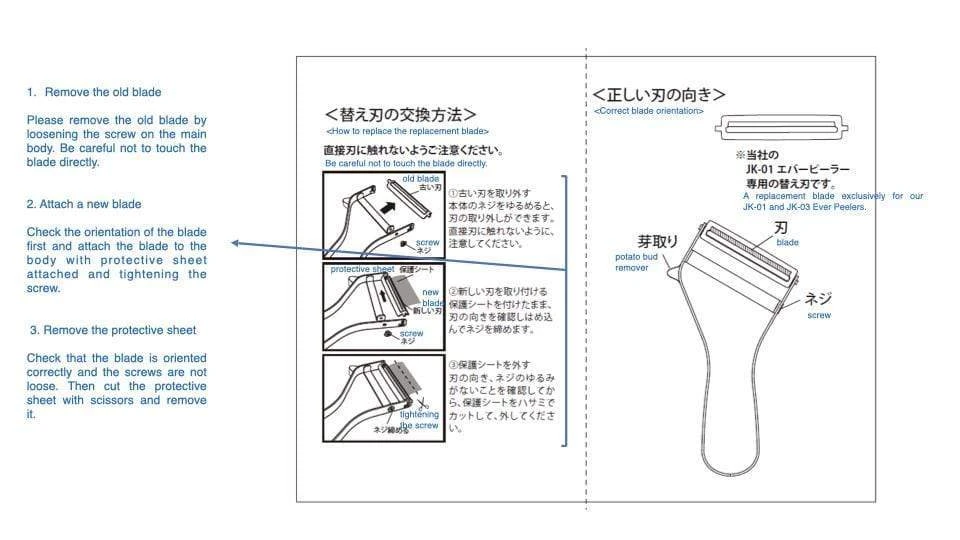 The blade is made from 440A stainless steel is normally used for high quality knives, so it stays sharp with daily use and slices through produce with the utmost ease, unlike other flimsy brands. It makes quick work of even the toughest, hard-skinned foods like butternut squash, breaking it down into paper-thin shavings. Find the Ever Peeler here. This is just the replacement blade.