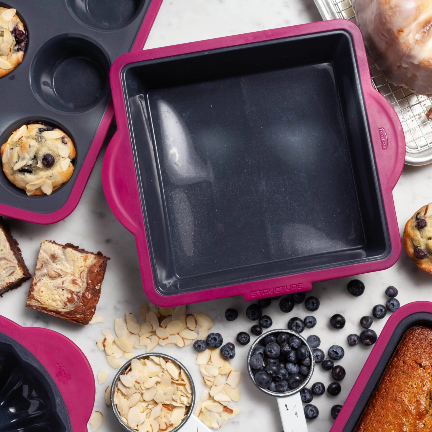 This cake pan is our top pick for brownies and birthday cakes, as the silicone prevents food from sticking and eliminates the need for greasing the pan. Each Trudeau pan is made from silicone with an internal steel frame around to top rim for added structure, so it won’t flop around like other silicone bakeware. And silicone is generally known for being easy to clean and for providing exceptionally even browning. We love how even delicate cakes slide out fairly easily with some slight flexing of the pan, though a light layer of butter might be welcome for especially delicate desserts. Note: Silicone does heat differently than glass or metal. Your bake time may be a few minutes longer than the recipe suggests.
