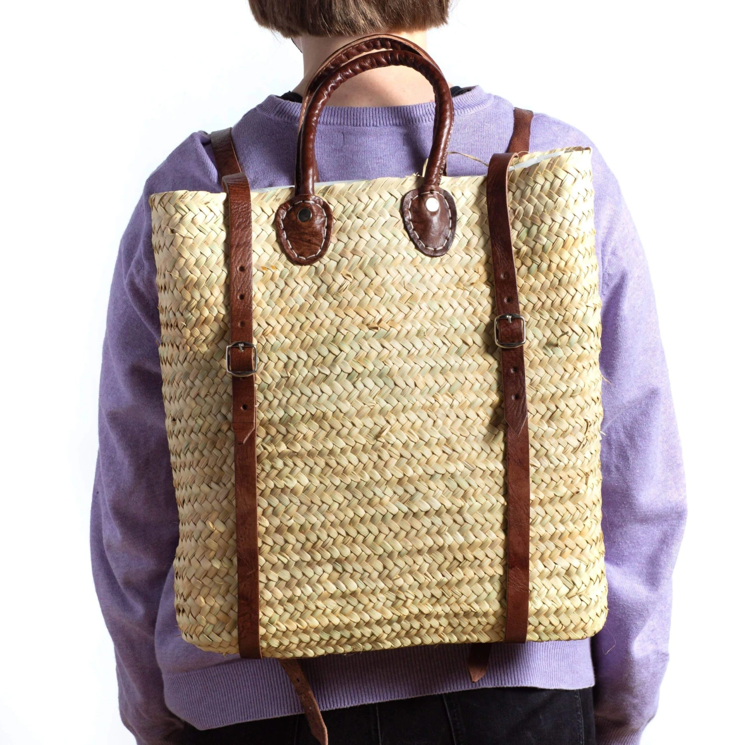 Place of Origin: Morocco[/accordion] Care and Use [/title] Care: Wipe clean with soft cloth and warm soapy water. [/accordions-break] Made with care starting in the mountains of Morocco, all the way to the capital city. [/banner_heading] Artisans near the Atlas Mountains (where the Dwarf Palm is indigenous) first weave the fine palm, and then leather workers in Marrakesh finish the straps and handle before sending each backpack off.[/banner-text-break] Wipe clean with soft cloth and warm soapy water.