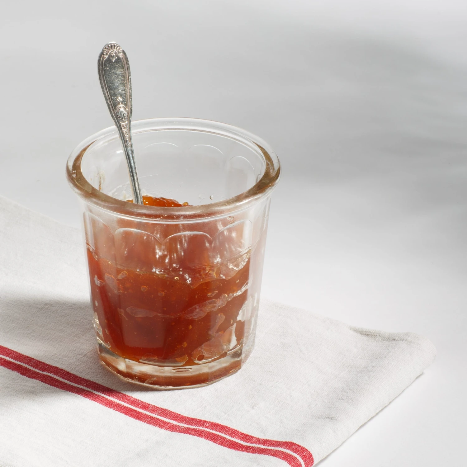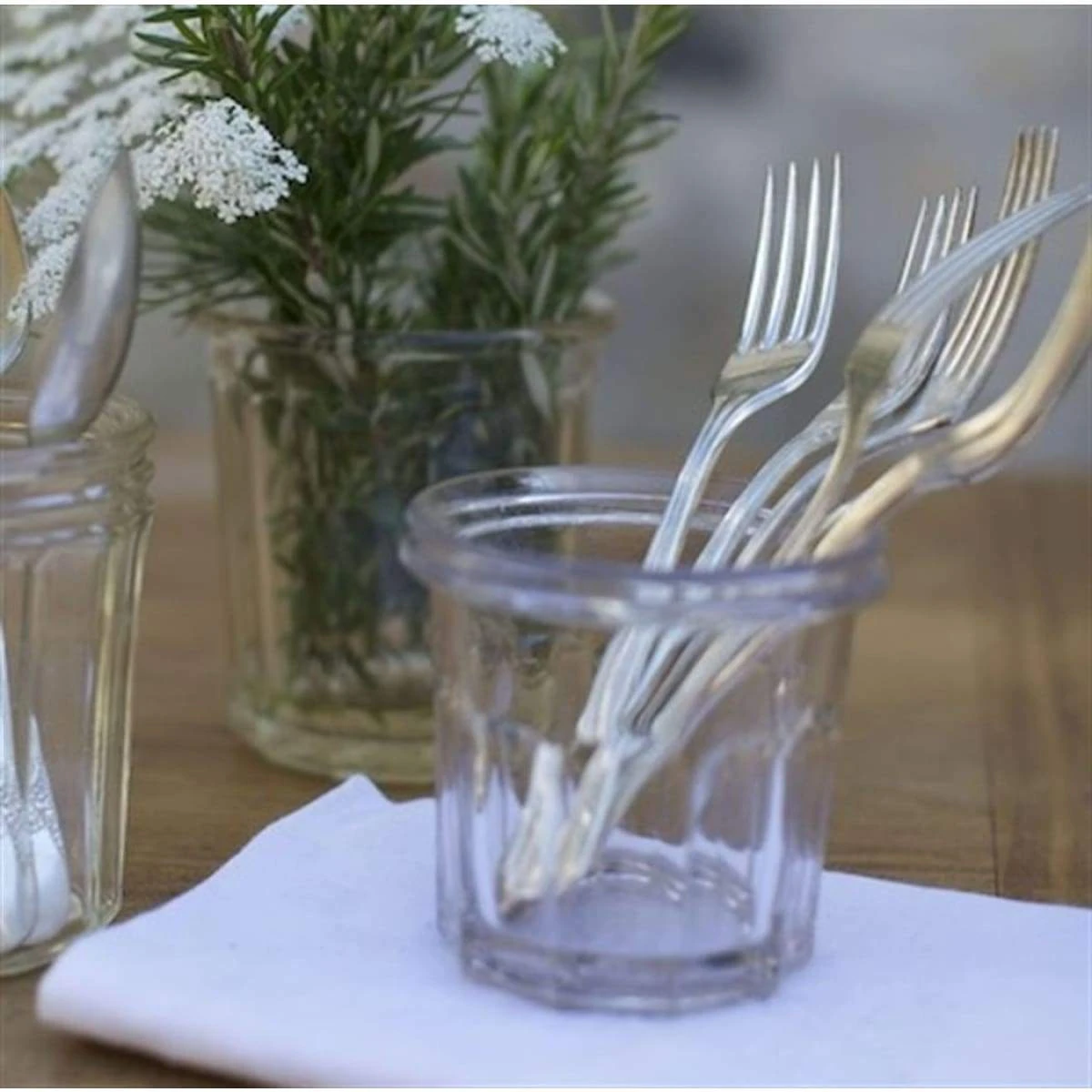 Collected from flea markets throughout central France, these vintage glass jam jars come in a set of two. Each jar shows marks of time and use consistent with a product of this age—which also makes each one unique. Please note each product is one of a kind–items received may vary from those pictured.
